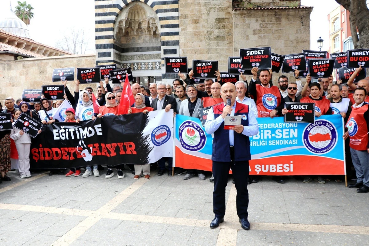 Eğitim camiası artan şiddet olaylarına karşı Adana'da omuz omuza verdi. Şanlıurfa Siverek'te yaşanan olayların şoku henüz atlatılamamışken, Kahramanmaraş Ayser Çalık Ortaokulu'nda meydana gelen ve bir öğretmen ile öğrencilerin hayatını kaybettiği menfur saldırıların ardından Eğitim-Bir-Sen Adana Şubesi harekete geçti. Cuma namazı çıkışında Adana Ulu Cami önünde toplanan yüzlerce vatandaş, eğitim çalışanı ve sendika üyesi, şiddet olaylarını lanetledi.