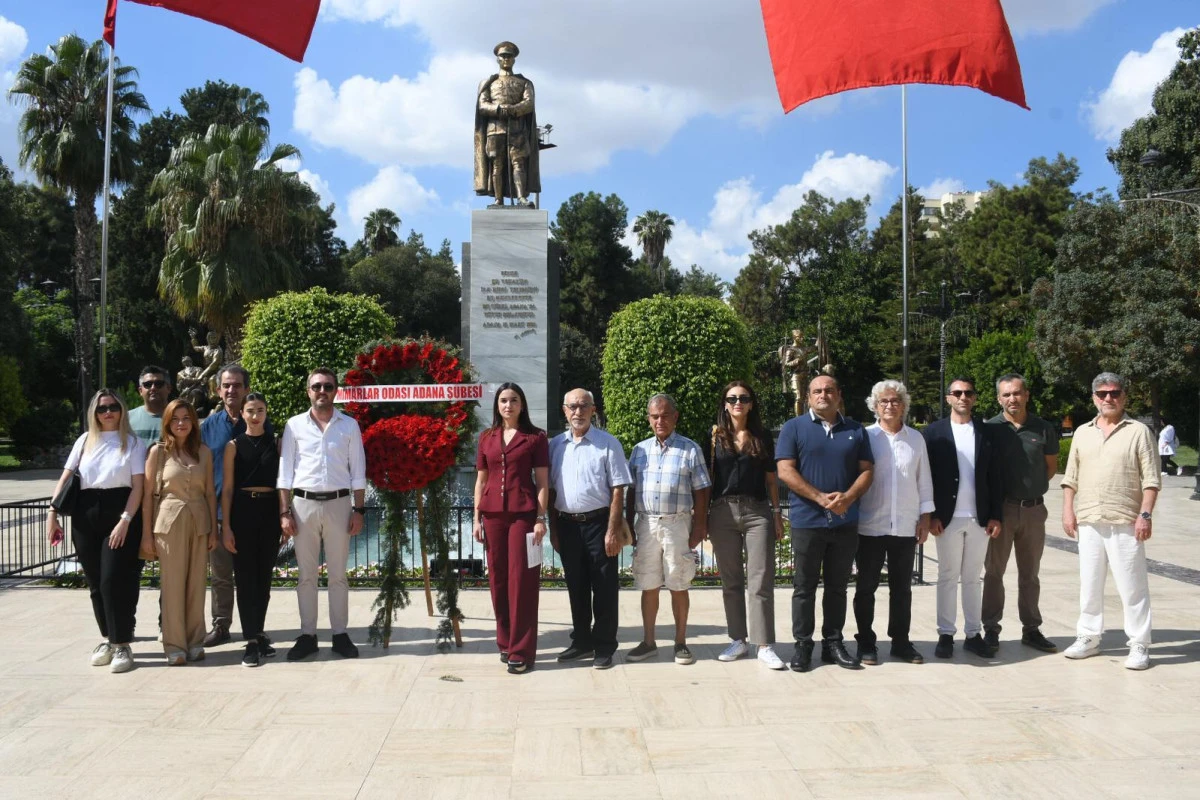 Mimarlar Odası Adana Şube Başkanı Canan Aksu ve üyeler, 6 Ekim Dünya Mimarlık Günü nedeniyle Atatürk anıtına çelenk sundu