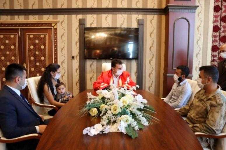 10 aylık oğullarıyla birlikte nikah masasına oturan genç çiftin nikahını Belediye Başkanı Melik Yaşar kıyarken, çiftin nikah şahitliklerini Çat Kaymakamı Mustafa Karali ve İlçe Jandarma Komutanı Jandarma Yüzbaşı Mehmet Karabulut yaptı.